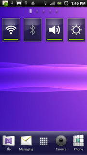 ด้านล่างเป็นปุ่มลัดเข้าเมนูไอคอน 4 ปุ่ม สามารถเพิ่ม/ลดไอคอนที่ต้องการได้ นอกจากนั้นยังมีปุ่มกึ่งกลางสำหรับเข้าเมนูหลัก