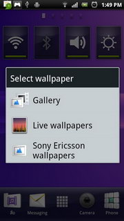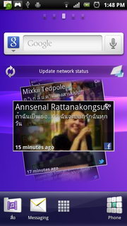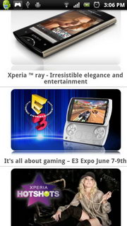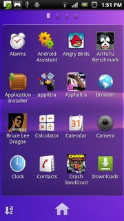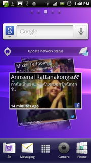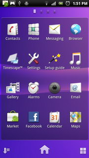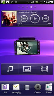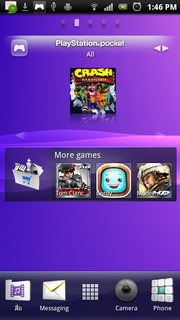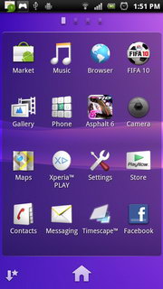 รูปแบบการแสดงผลหน้าจอหลัก จอแสดงผลหลักของ Xperia PLAY จะใช้ UI เฉพาะของ Sony Ericsson แบ่งออกเป็น 5 หน้าหลัก แต่ละหน้าประกอบไปด้วย