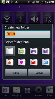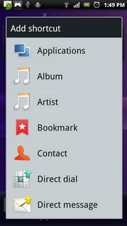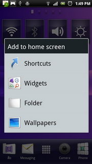 เมื่อแตะที่หน้าจอหลักค้างไว้จะเป็นการเพิ่มไอคอนแอพพลิเคชั่นต่างๆ บนหน้าหลักที่เลือกไว้้ แบ่งออกเป็น