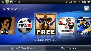 หากเลื่อนแผงปุ่มควบคุมเกมส์ขึ้น จะเป็นทางลัดเข้าสู่หน้ารายการเกมส์ในเครื่อง สามารถเล่นเกมส์ได้โดยใช้ปุ่มควบคุม หรือนิ้วเลือกเกมส์ที่ต้องการ หากต้องการดาวน์โหลดเกมส์เพิ่มเติมให้เลือก More Game จากนั้นก็เลือกดาวน์โหลดเกมส์ที่ต้องการได้