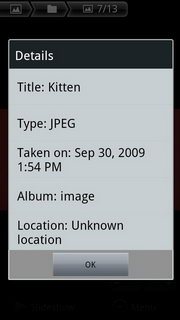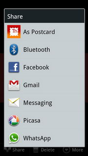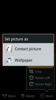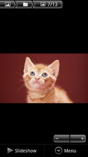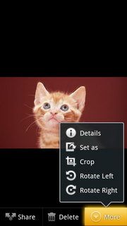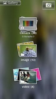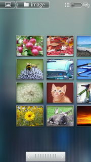 ถ้าเลือกโฟลเดอร์รูปภาพเมื่อเข้าไป จะแสดงรูปภาพทั้งหมดในโฟลเดอร์ สามารถเล่นภาพเป็นสไลด์โชว์, แชร์รูปภาพผ่าน E-mail, บลูทูธ, Social Network ต่างๆ ลบภาพ และตกแต่งรูปภาพ (ดูรายละเอียด, ตั้งเป็นภาพผู้ติดต่อ/พื้นหลัง, ตัดภาพ, หมุนภาพ)