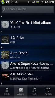 เครื่องเล่นเพลง เข้าสู่เครื่องเล่นเพลงจะแบ่งโหมดเพลงต่างๆ เป็น 4 ส่วน ได้แก่ตามรายชื่อศิลปิน, อัลบั้ม, เพลงทั้งหมด และ Playlist ถ้าต้องการค้นหาเพลงอย่างรวดเร็วให้กดที่ช่องด้านบน แล้วพิมพ์ชื่อเพลงหรือศิลปินที่ต้องการ เครื่องจะทำการค้นหาเพลงให้ทันที