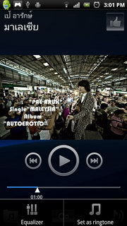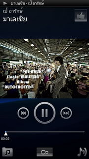 เมื่อเลือกเพลงที่เล่นแล้ว จะเข้าสู่รายการเครื่องเล่นเพลงโดยจะแสดงรายละเอียด ชื่อศิลปิน, ชื่อเพลง, ปกอัลบั้ม (ถ้ามี), เครื่องควบคุมเพลง (เล่นก่อนหน้า, เล่น/พัก, เล่นถัดไป) และแถบแสดงเวลาเพลงที่สามารถเลื่อนไปตำแหน่งที่ต้องการได้
