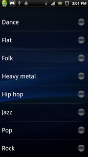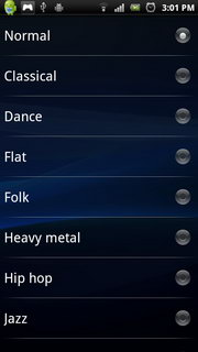 หากกดตั้งค่าจะสามารถตั้งอีควอไลเซอร์ (Normal, Classical, Dance, Flat, Folk, Heavy metal, Hip hop, JazzPop, Rock) และตั้งเพลงเป็นเสียงเรียกเข้า