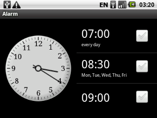 Alarm แอพพลิเคชั่นสำหรับการตั้งปลุก ให้ตัวเครื่องแจ้งเตือนปลุกเวลาเป็นต่างๆ ได้ตามต้องการ