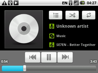 Music แอพพลิเคชั่นเล่นเพลง ไฟล์เพลงที่รองรับขึ้นอยู่กับ การรองรับของระบบปฏิบัติการณ์แอนดรอยด์ 2.1