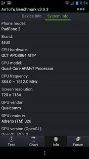 ข้อมูลทางด้านฮาร์ดแวร์ ASUS Padfone 2 ขับเคลื่อนด้วย CPU Qualcomm Snapdragon S4 Pro Krait (Cortex-A15) quad-core 1.5 GHz, GPU Adreno 320, RAM 2 GB, ROM 32 GB, รองรับการเชื่อมต่อ 2G GSM/EDGE/GPRS 850/900/1800/1900MHz, 3G WCDMA 900/2100MHz, 4G LTE, Bluetooth 4.0, NFC, GPS (A-GPS+GLONASS), แบตเตอรี่ความจุ 2140 mAh
