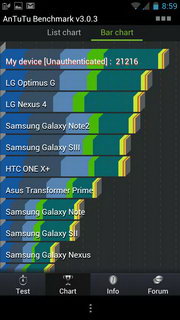 การทดสอบความเร็ว และการแสดงผลของเครื่อง ผลทดสอบความเร็ว Benchmark ด้วย AnTuTu Benchmark ได้ 21,216 คะแนน