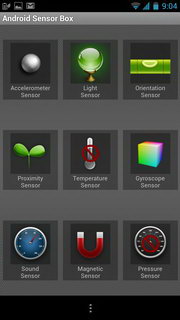 ทดสอบเซนเซอร์ด้วยโปรแกรม Android Sensor Box พบเซนเซอร์ดังนี้ - Accelerometer Sensor ตรวจวัดความเร็วเชิงมุม