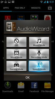 AudioWizard แอพฯ ปรับแต่งระบบเสียงอัตโนมัติ สามารถเลือกโหมดเสียงให้ตรงกับการใช้งาน ช่วยให้เสียงที่ออกมาผ่านลำโพงมีช่วงเสียงคุณภาพดีขึ้น มีโหมดให้เลือก (ปิด, music, movies, recording, Gaming และ Speech)