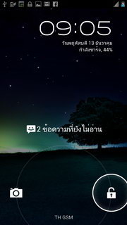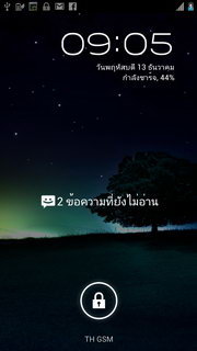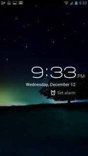 หน้าล็อคสกรีน แสดงเวลาและวันที่บริเวณมุมขวาบน สามารถปลดล็อคหน้าจอด้วยการแตะไอคอนรูปกุญแจไปทางขวาเพื่อเข้าสู่หน้าจอหลัก