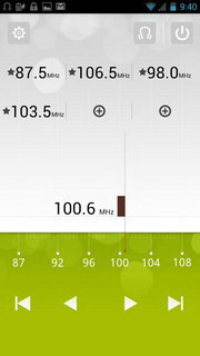 FM Radio วิทยุ FM ใช้หูฟังเป็นตัวรับสัญญาณ สามารถเปิดให้เสียงออกลำโพงเครื่อง มีปุ่มปรับช่องที่ค้นหาคลื่นสถานีถัดไปอัตโนมัติ