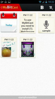 MyBitCast แอพฯ จดบันทึกที่ออกแบบมาอย่างเรียบง่าย สามารถจดบันทึก, ถ่ายภาพและบันทึกข้อความลงไป ซึ่งบันทึกทั้งหมดจะถูกอัพโหลดไปยังบริการคลาวด์ (ASUS Webstorage) อัตโนมัติ สามารถเข้าถึงผ่านอุปกรณ์เครื่องอื่น หรือผ่านเว็บเบราว์เซอร์ได้
