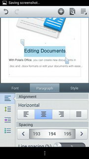 ภายในแอพฯ มีเครื่องมือและลูกเล่นในการใ้ช้งานไฟล์เอกสาร เช่น แก้ไขตัวอักษร, แืทรกภาพ, แทรกแผนภูมิ เป็นต้น สามารถบันทึกไฟล์เข้าไปเก็บบนบริการคลาวด์ (Box, Dropbox, Google Docs)