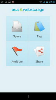 ASUS WebStorage แอพฯ จัดเก็บไฟล์เอกสาร, เพลง, ภาพถ่าย หรือวิดีโอ ไปไว้ในพื้นที่เก็บข้อมูลออนไลน์ (Cloud Storage) ซึ่งมีพื้นที่สำหรับผู้ใช้งานใหม่ฟรี 5 GB มีเครื่องมือสำหรับค้นหาไฟล์ที่ใช้งานง่าย