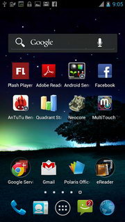 หน้าจอหลัก พื้นที่สำหรับวางไอคอนและ widget ทางลัดที่ผู้ใช้สามารถปรับแต่งแก้ไขเองได้ สามารถสร้างหน้าจอหลักได้มากสุด 7 หน้า ดูหน้าจอหลักอื่นโดยการปัดนิ้วบนหน้าจอไปทางซ้าย-ขวา