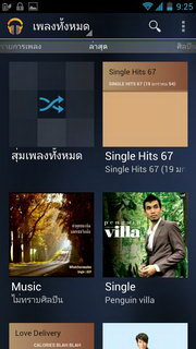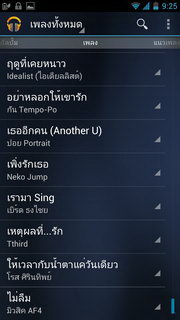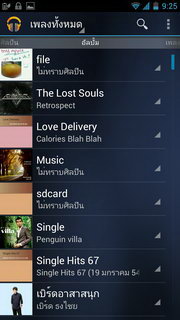 เครื่องเล่นเพลง แหล่งรวมไฟล์เพลงในเครื่อง สามารถแบ่งหน้าแสดงผลออกเป็น รายการเพลง, ล่าสุด, ศิลปิน, อัลบั้ม, เพลง, แนวเพลง