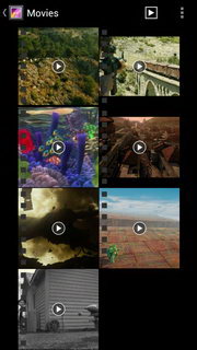 เครื่องเล่นวิดีโอ เรียกดูไฟล์วิดีโอผ่านแอพฯ Gallery โดยไฟลที่เป็นวิดีโอจะมีเครื่องหมายเล่น (รูปสามเหลี่ยม) กำกับอยู่ ในหน้าเครื่องเล่นวิดีโอสามารถเล่นวิดีโอได้ทั้งแนวตั้งและแนวนอน มีแถบเวลาที่ปรับเลื่อนได้