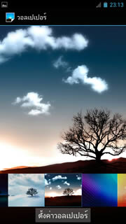 เข้าใช้งาน - แตะบนไอคอนหนึ่งครั้งเพื่อเข้าสู่แอพพลิเคชั่นนั้น การเปลี่ยนพื้นหลัง แตะที่ว่างบนหน้าจอหลักค้างไว้ > เลือกประเภทของพื้นหลังที่ต้องการ (แกลเลอรี่, วอลล์เปเปอร์, วอลล์เปเปอร์ภาพเคลื่อนไหว)