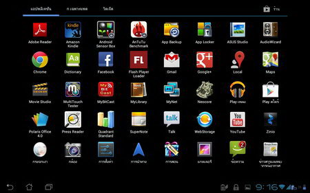 ตัวอย่างการใช้งานบนแท็บเล็ต ASUS Padfone 2 Station