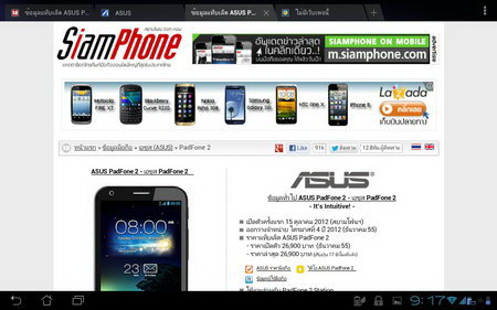 ขอขอบคุณ : อัสซุสเทค คอมพิวเตอร์ (ประเทศไทย) จำกัด ข้อมูลผู้ใช้ ร่วมแสดงความเห็นกับ ASUS PadFone 2 แคตตาล็อกตัวเครื่อง : http://www.siamphone.com/spec/asus/padfone_2.htm