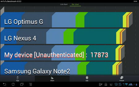 การทดสอบความเร็ว และการแสดงผลเมื่อรวมเข้ากับแท็บเล็ต ผลทดสอบความเร็ว Benchmark ด้วย AnTuTu Benchmark ได้ 17,873 คะแนน