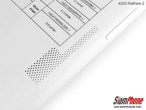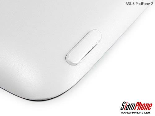 ส่วนล่างของฝาหลังมีโลโก้ Padfone ด้านล่างสุดจะมีส่วนที่ยื่นออกมาเล็กน้อยเพื่อเปิดช่องให้พอร์ตเชื่อมต่อ microUSB