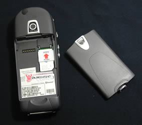 - Back View : จะเป็นเลนส์กล้อง ใต้สัญลักษณ์ WINDOWS ระบุถึงความสามารถไว้ชัดเจนว่า VGA F 2.8 พร้อมกันนั้นมีกระจกสำหรับสะท้อนภาพตัวเอง ล่างสุดจะเป็นสลักสำหรับยึด Battery ขนาด 1,000 mAh ขนาดใหญ่ชิ้นเดียวกับฝาหลัง และ เมื่อเปิดขึ้นมาก็จะพบช่องใส่ Sim Card และ ตราของกรมไปรษณีย์โทรเลขที่แสดงอนุญาติใช้งานคลื่น Bluetooth