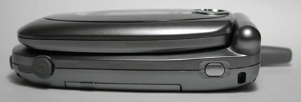 แผงด้านหน้าเรียงตามยาว จะมีเลนส์กล้องถ่ายรูป, ไฟกระพริบเมื่อมีสายเรียกเข้า