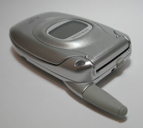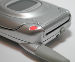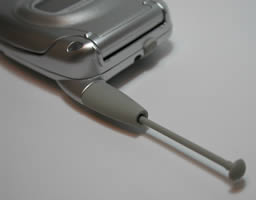 เสาอากาศที่สามารถดึงขึ้นมาเพื่อรับสัญญาณ ปุ่มด้านข้างตัวเครื่องใช้สำหรับปรับระดับเสียงการโทร