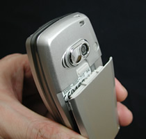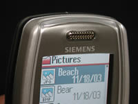 - ด้านหลัง (Back View) : ด้านบนซ้ายมีการเจาะรูเพื่อคล้องสาย เลื่อนลงมาเป็นตัวกล้องระดับ VGA พร้อมกระจกเงาสำหรับส่องสะท้อนถ่ายตัวเอง สำหรับตัวกล้องนั้นค่อนข้างนูนออกมาจากพื้นผิวพอสมควร ทำให้ต้องระวังมากเล็กน้อย จากนั้นจะเป็นตัว Battery ซึ่งในรุ่นนี้จะเป็น Battery ติดกับฝาหลังทำให้ไม่สามารถใช้ Battery ร่วมกับ Series เก่า ๆ ได้อย่างสิ้นเชิง รวมทั้งด้านล่างของเครื่องสำหรับเสียบสายชาร์จ (Charger) ก็ต่างจากโทรศัพท์มือถือซีเมนส์ Series เก่า ๆ เช่นกัน