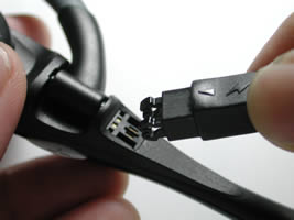 ต่ำจากตัวหมุนลงมาหน่อยจะเป็นช่องเสียบสายชาร์จแบตเตอรี่ ซึ่งจะเหมือนกับสายชาร์จของโทรศัพท์มือถือโซนี่-อีริคสันทั่วไป